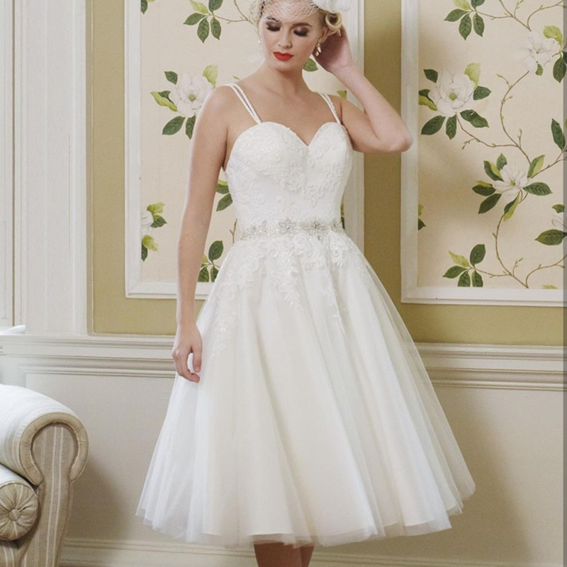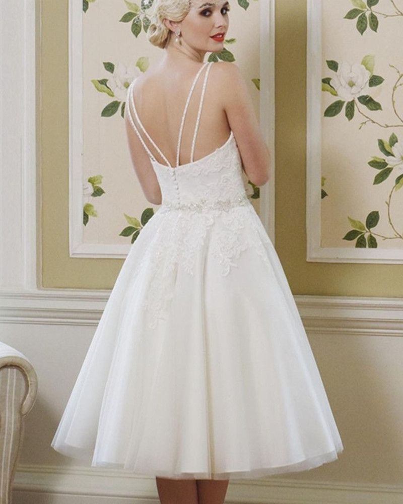 Boho Elegant Short Wedding Dresses Lace Appliques Sweatheart A-line Spaghetti Straps