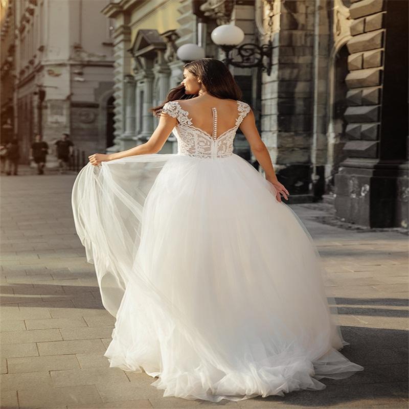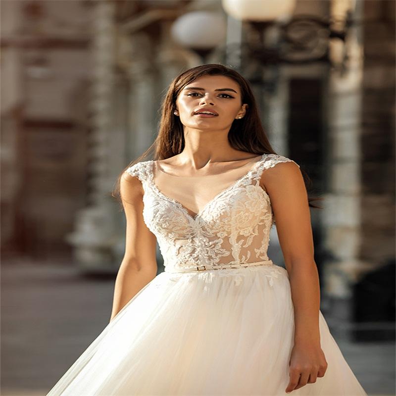 Chic A Line Wedding Dresses Bohemian Sexy V Neck Custom Made Lace Applique Bridal Gowns
