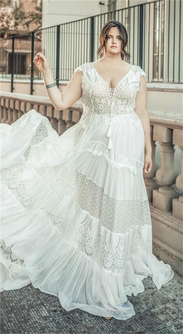 Bridal Wedding Dresses A Line V Neck Lace Appliqued Backless Bohemian Wedding Dress Custom Made Plus Size Bridal Gowns