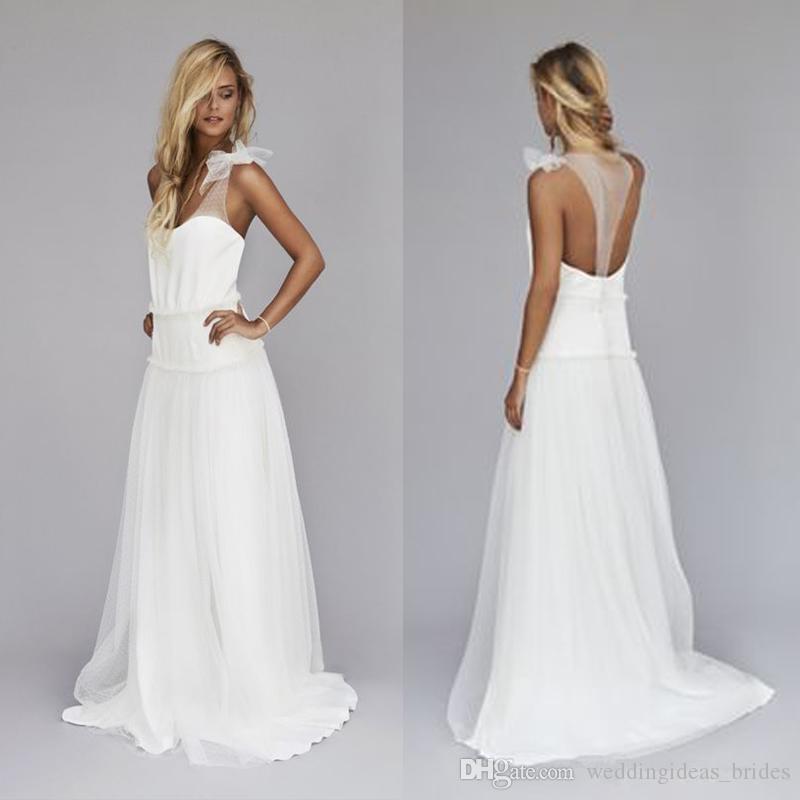 Beach Wedding Dresses Cheap Dropped Waist Bohemian V Neck Illusion Back Boho Bridal Gowns
