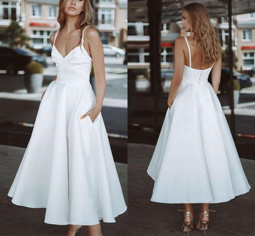 Boho Satin Short Wedding Dresses Ankle Length Bridal Gowns
