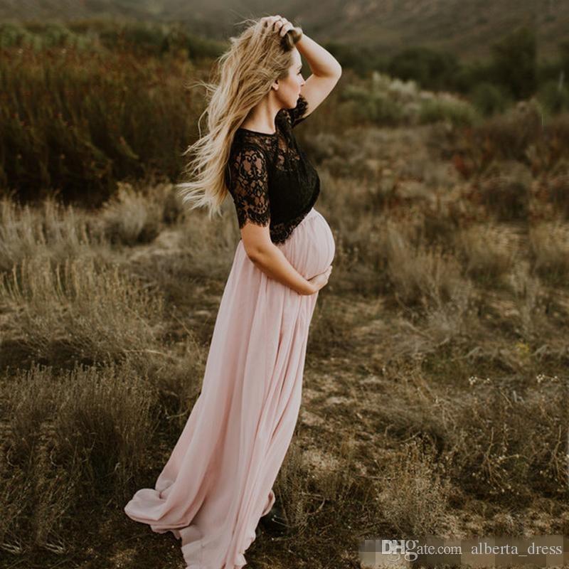 Cheap Stunning Maternity Wedding Dresses Two Pieces Wedding Dress Country Black Lace Short Sleeves Custom Made Boho Bridal Gowns
