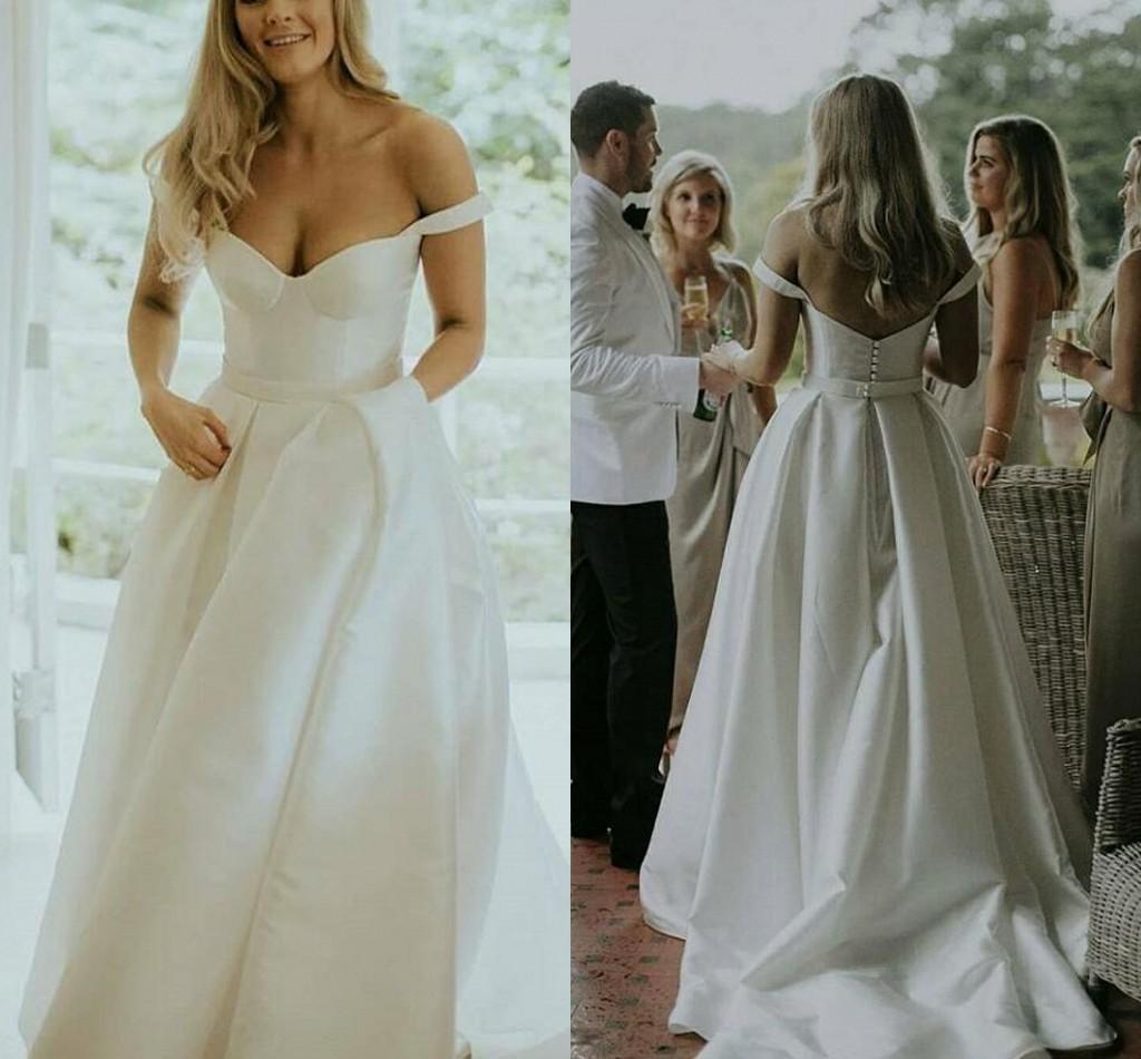 Simple Satin A-Line Wedding Dresses Off Shoulder Bridal Gowns
