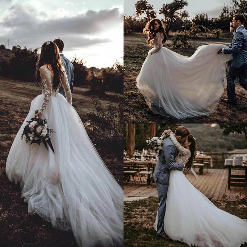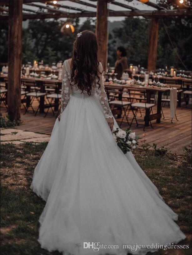 Bohemian Country Wedding Dresses A Line Long Sleeve Lace Applique Boho Wedding Gowns