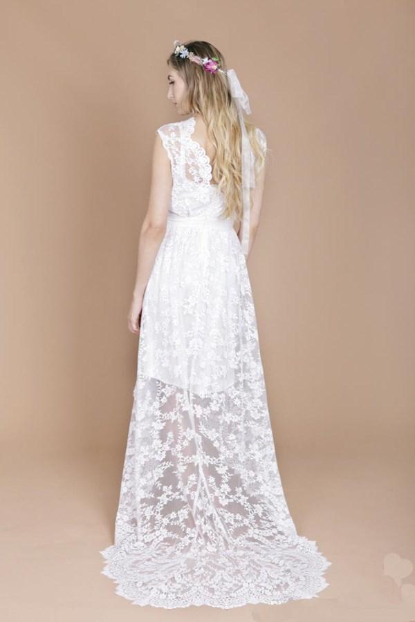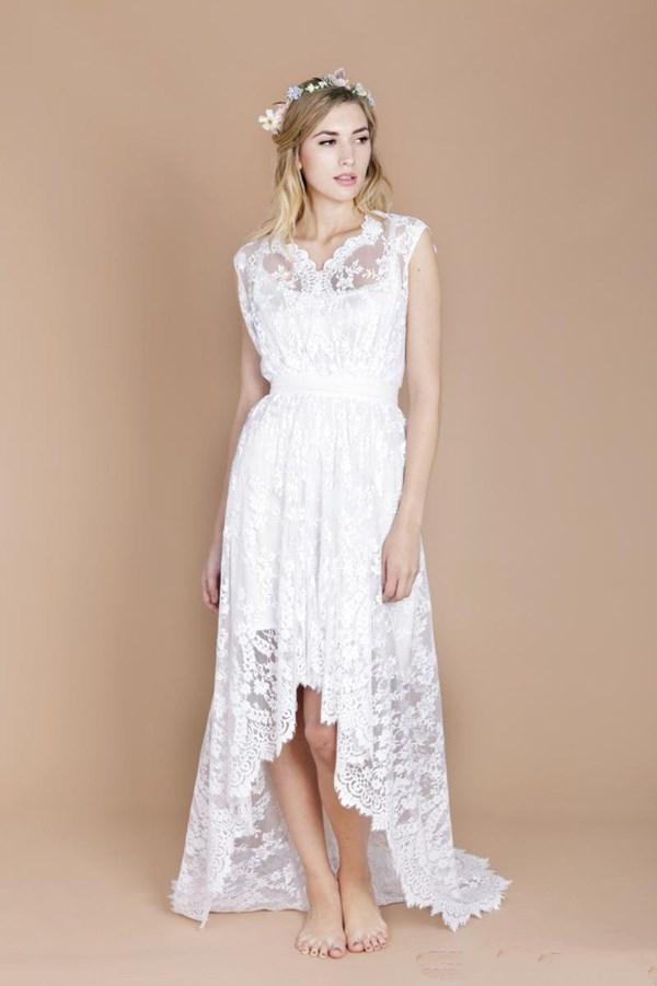 Boho Beach Wedding Gowns A Line V Neck High Low Full Lace Vintage Bridal Dresses