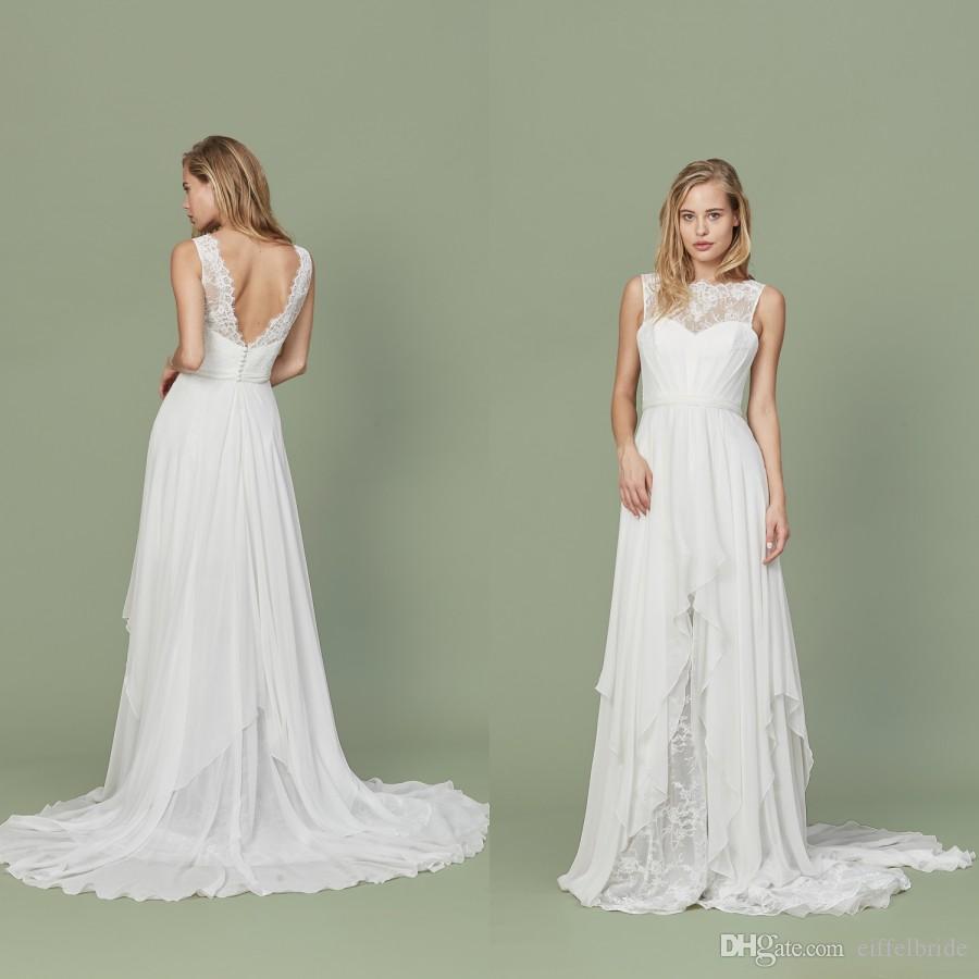 Cheap Boho Beach Wedding Dress Sexy Sheer Lace Applique Jewel Neck Ivory A Line Backless Chiffon Country Bridal Dresses