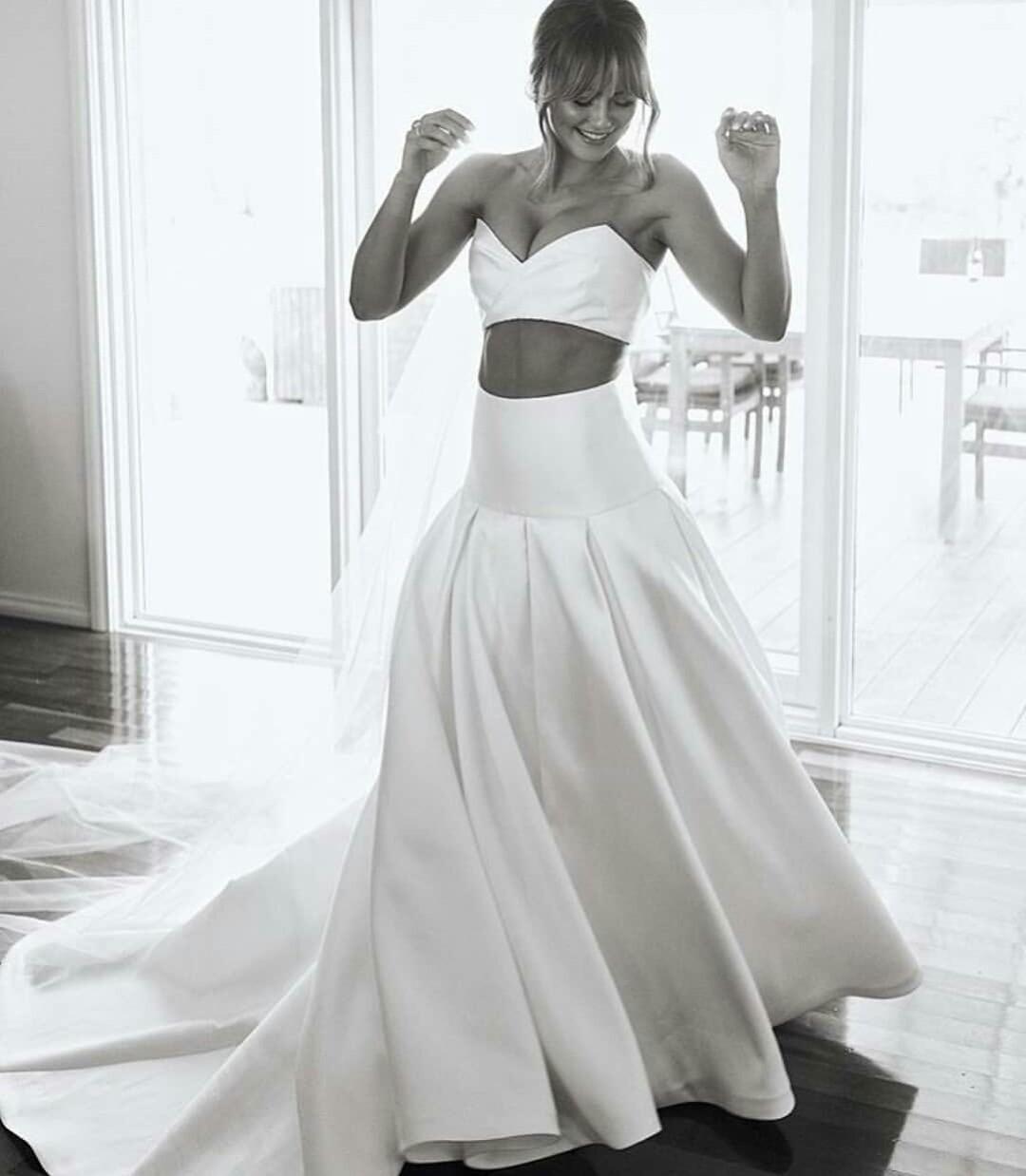 Graceful Wedding Dresses Two Pieces Sweetheart Backless Bridal Gowns Boho Sweep Train A Line Wedding Dress