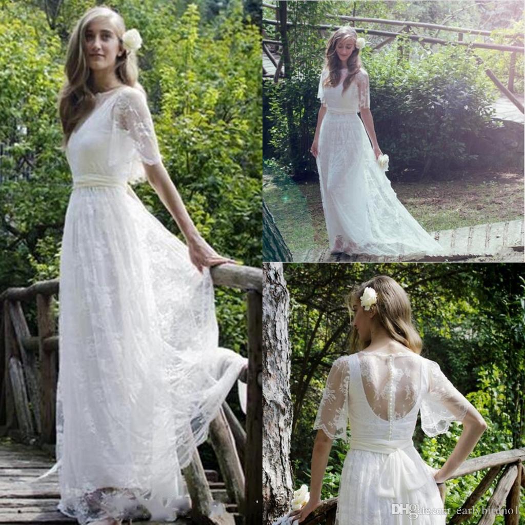 New Romantic Bohemian Beach Lace Wedding Dresses Elegant Plus Size Floor Length Boho Wedding Bridal Gown