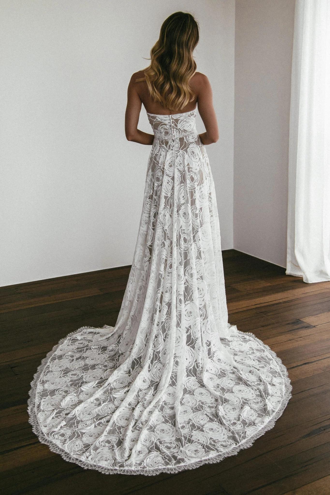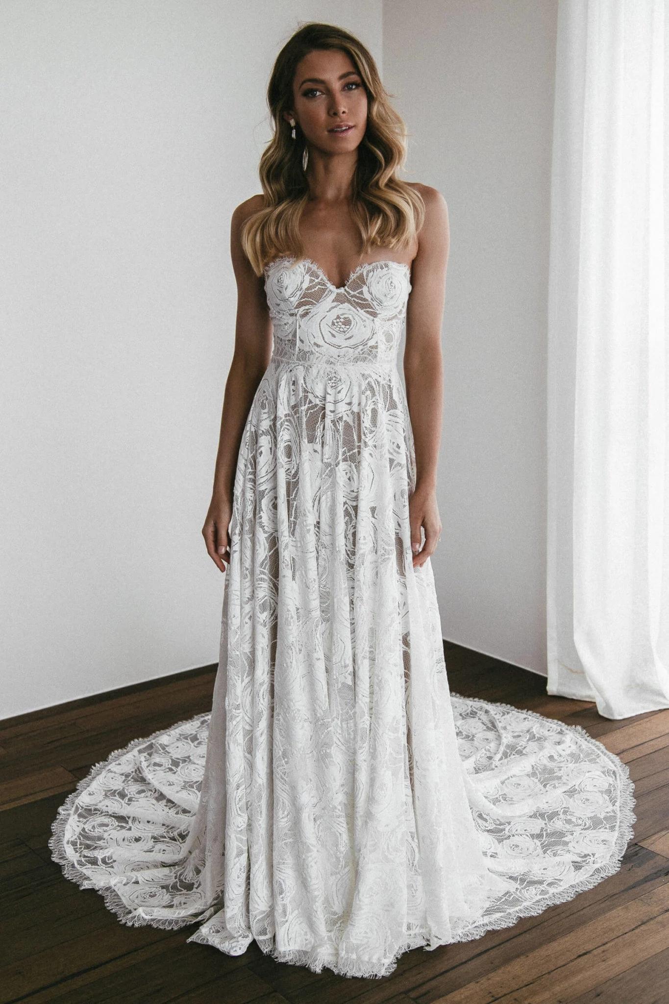 Country Floral Lace Wedding Dress Boho Sweetheart Detachable Sleeves Bohemian Bridal Gowns Beach Bride Dresses