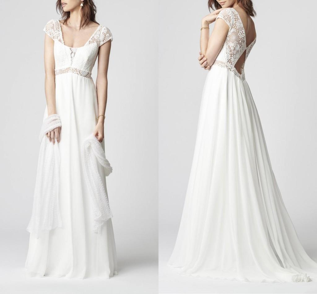 Summer Bohemian Wedding Dresses V Neck Chiffon A Line Cap Sleeve Lace Boho Wedding Dress Beach Bridal Gowns