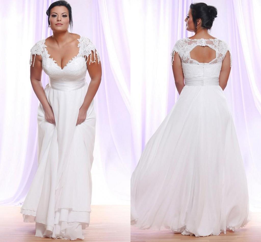 A Line Wedding Gowns V Neck Short Sleeves Lace Appliqued Bridal Dresses