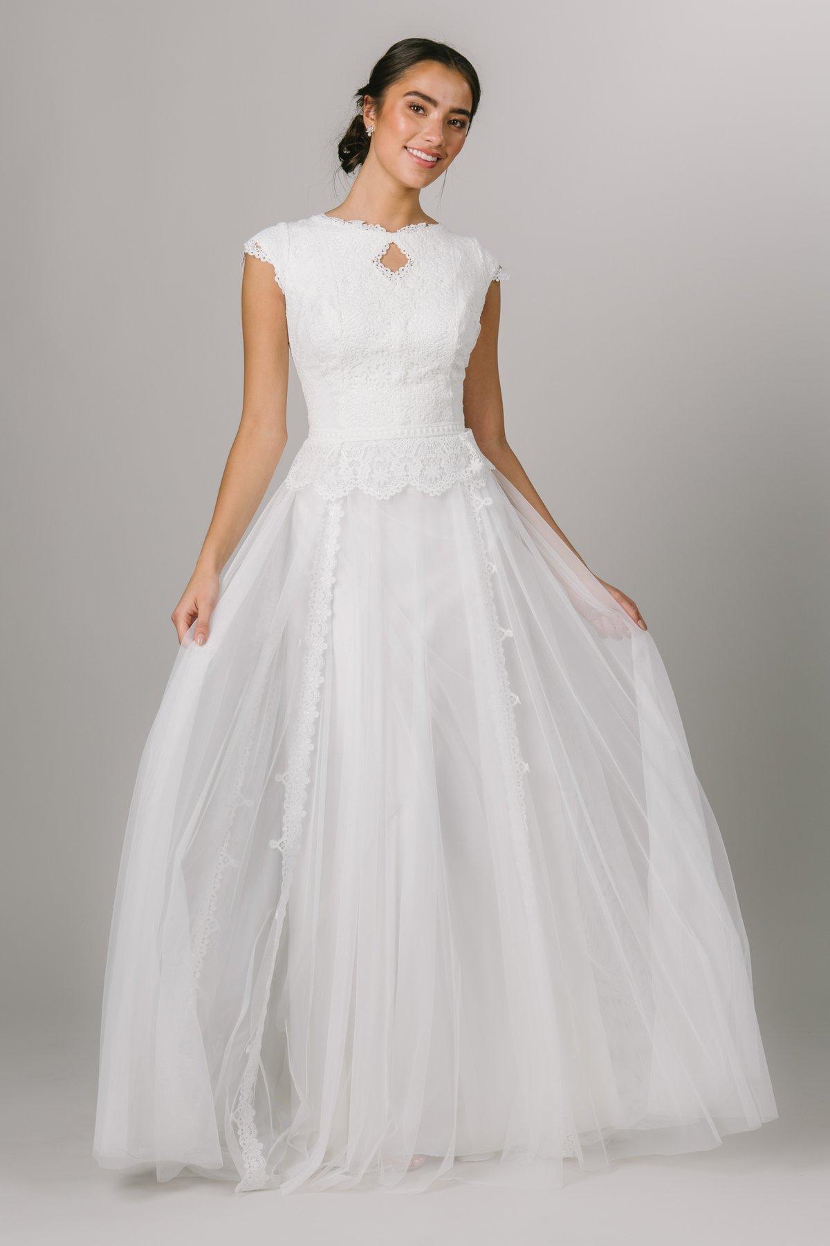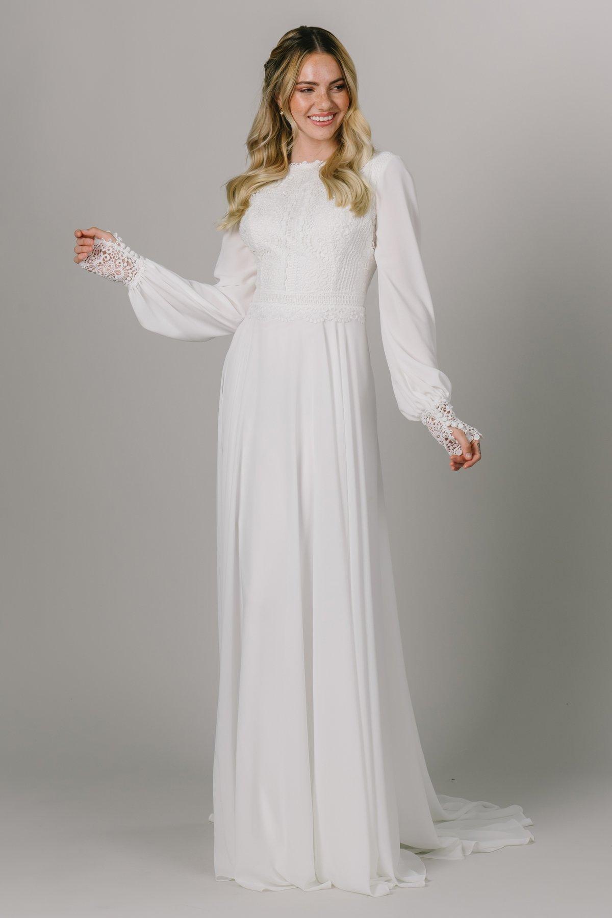 A-line Lace Chiffon Boho Modest Bridal Gowns Wedding Dress Long Sleeves Summer Elegant LDS Beach Bride Dress