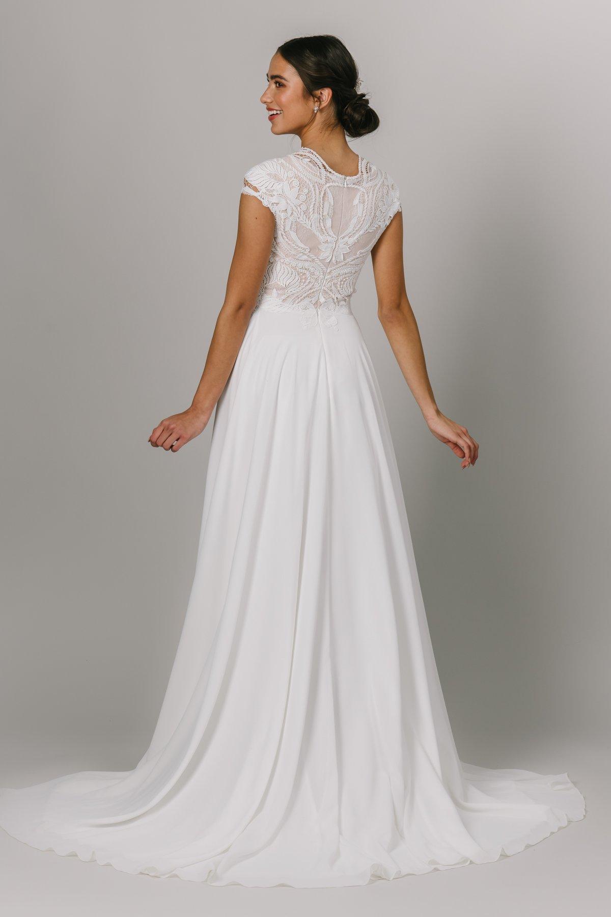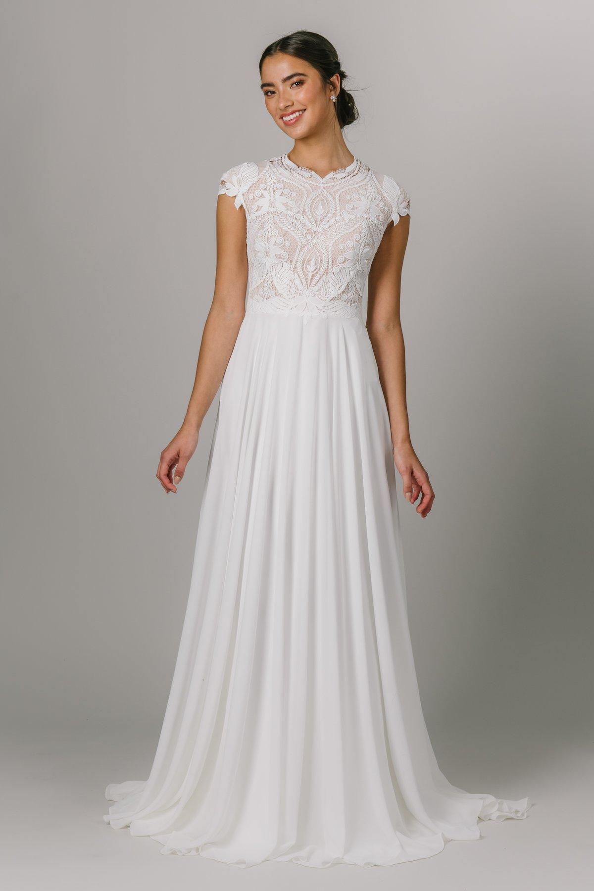Simple A-line Lace Chiffon Boho Modest Bridal Gowns Wedding Dress