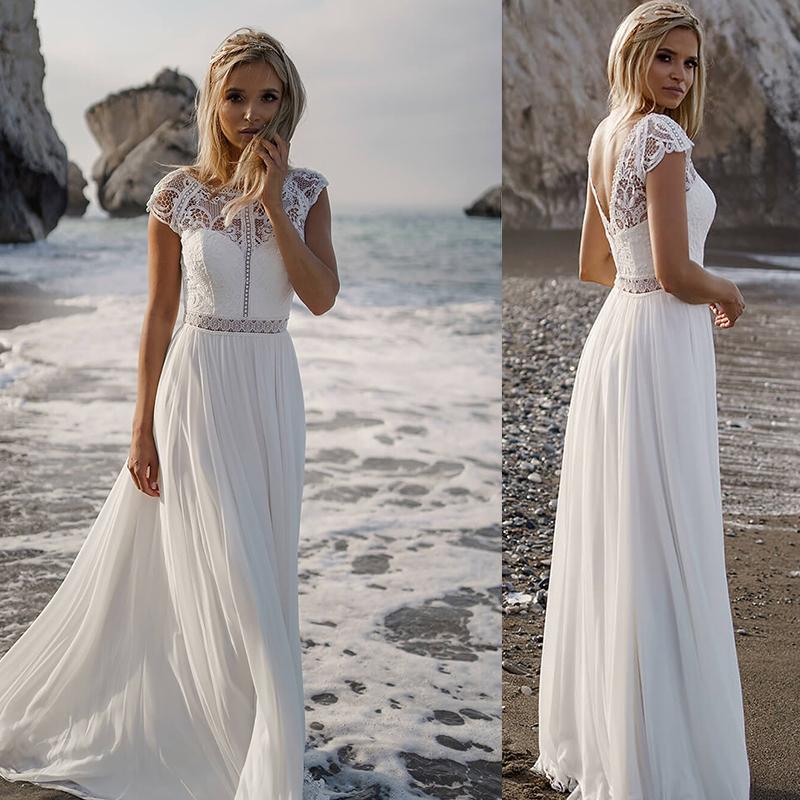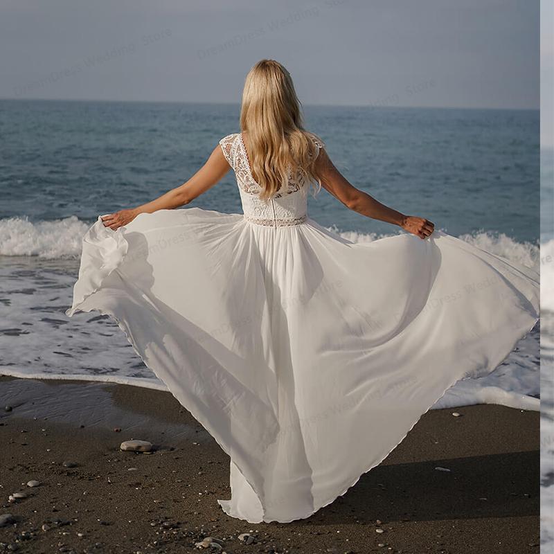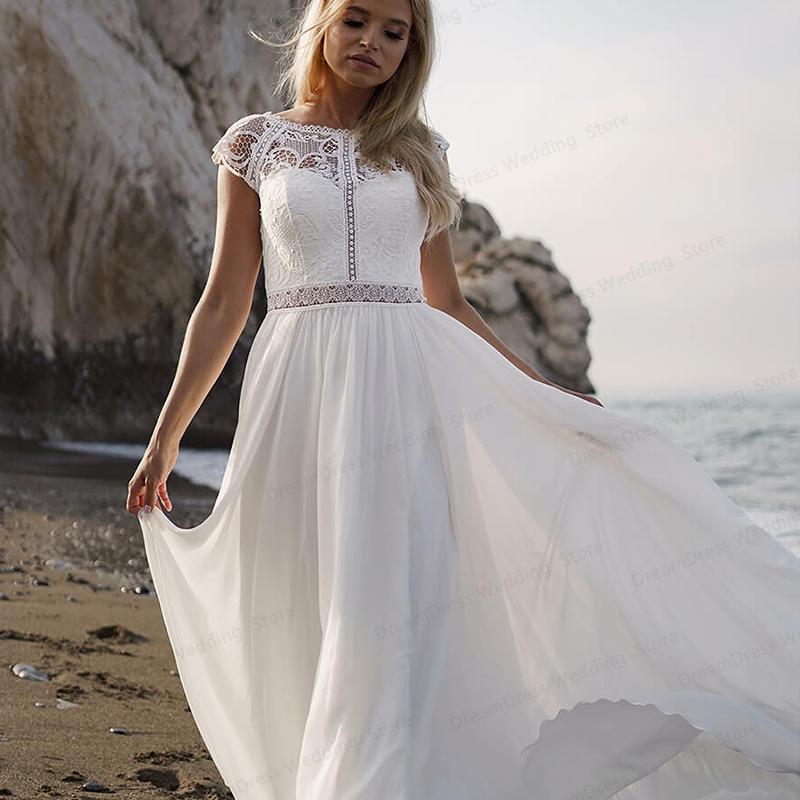 Summer Beach Wedding Dress vestido de noiva boho praia A Line Lace Gowns Custom Made Sheer Bridal Dresses