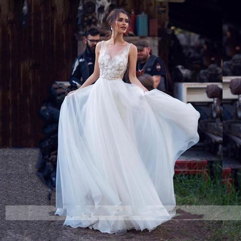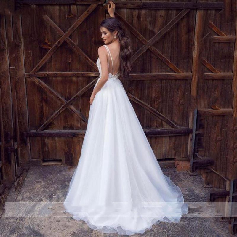 Summer Boho Long Wedding Dresses Bridal Gowns Sexy Backless Straps Tulle Lace Vestido De Novia A Line Bride Dress