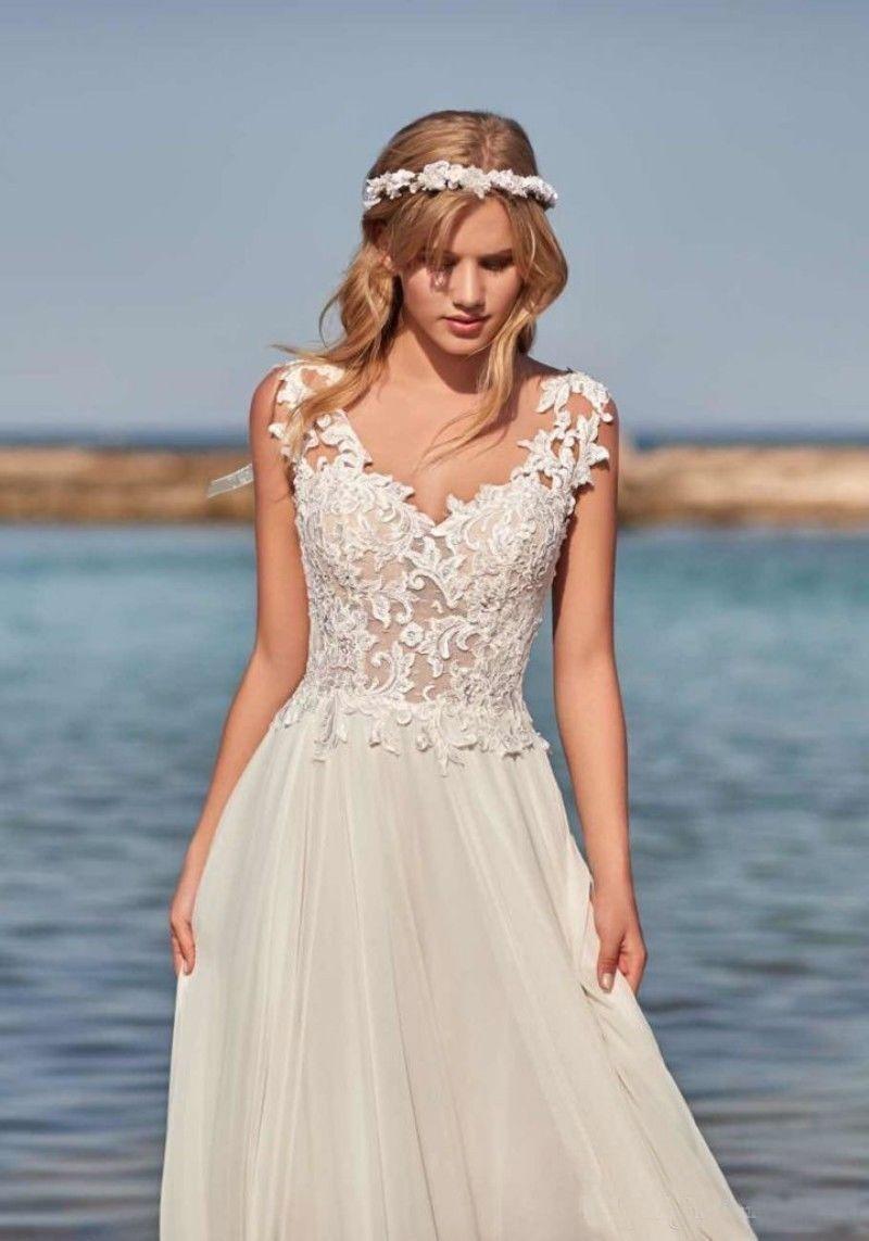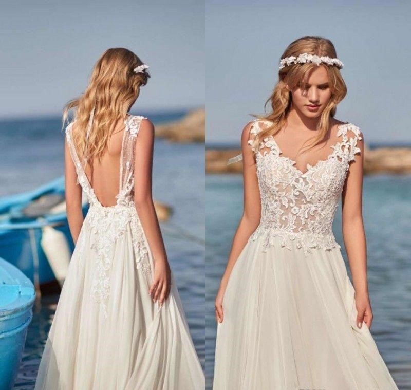 Simple Bohemian Beach Wedding Dresses Backless V Neck Lace Appliques Floor Length Customize Bridal Gowns