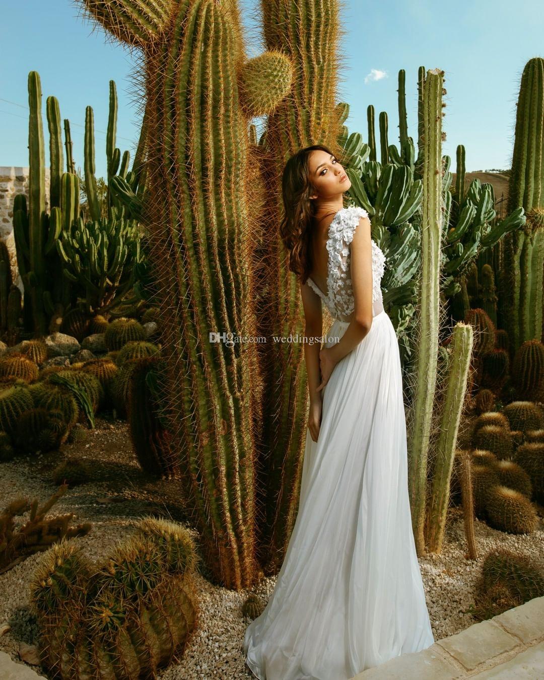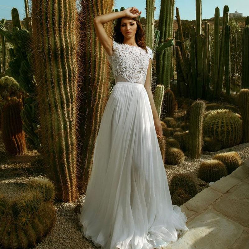 Stunning Beach Backless Wedding Dresses Bateau Neck Beaded Bridal Gowns