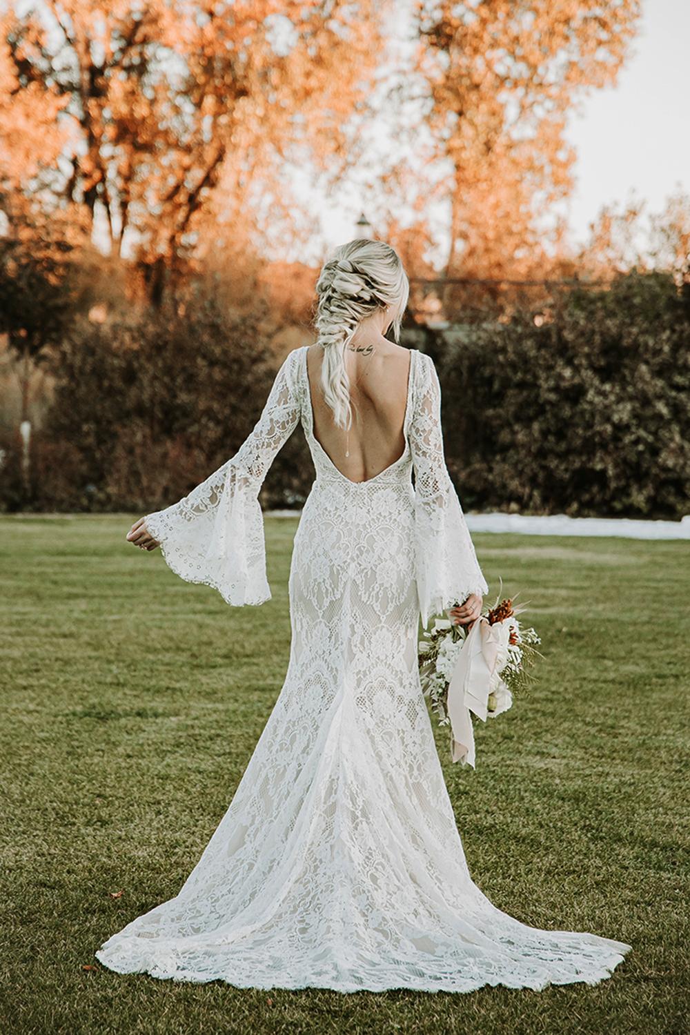 Boho Wedding Dresses Mermaid Long Flare Sleeve Open Backless Full Lace Bohemian Bridal Gowns