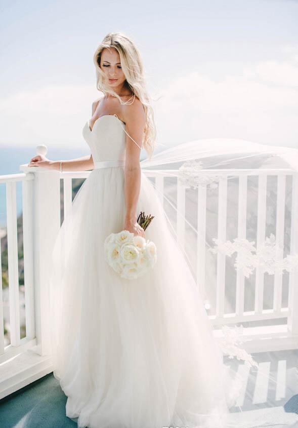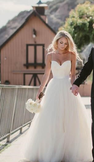Cheap Beach Wedding Dresses Ivory Spaghetti Straps Sweetheart Long Tulle Bohemian Wedding Dress Bridal Gowns