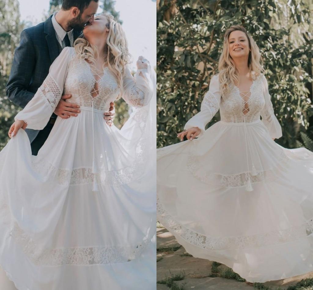Lace Long Sleeve A Line Bridal Gowns Gothic Hippie Country Style Boho Wedding Dresses