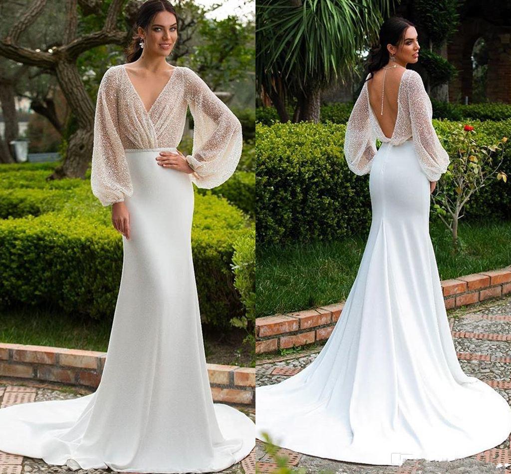 legant Poet Long Sleeves Mermaid Wedding Dresses Vinatge V Neck Backless Beach Boho Bohemian Plus Size Bridal Gowns