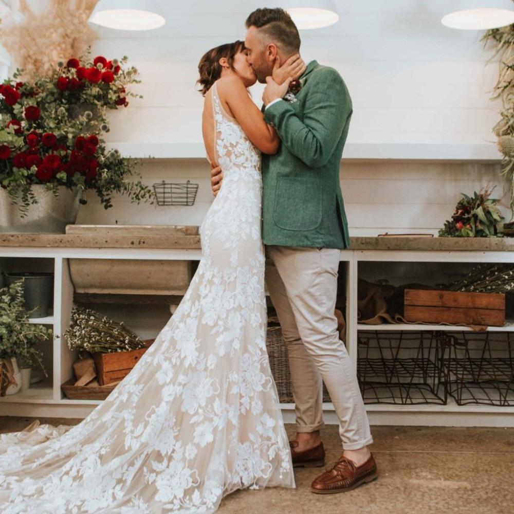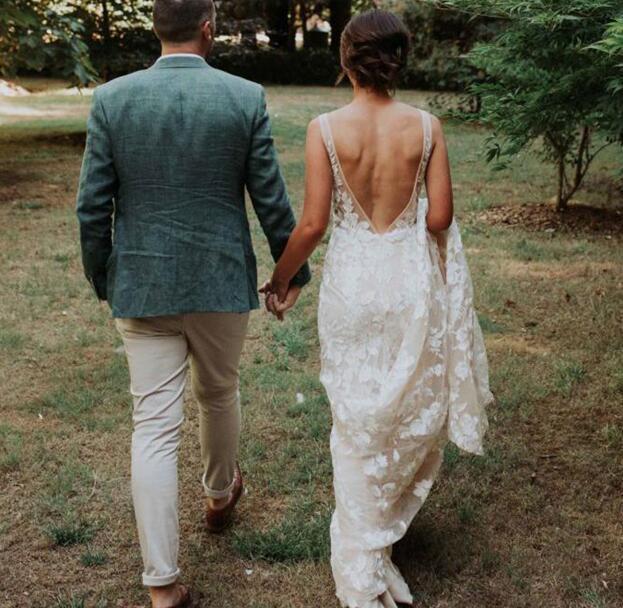 Plunging V Neck Lace Mermaid Wedding Dresses Sexy Bohemian Country Bridal Gown