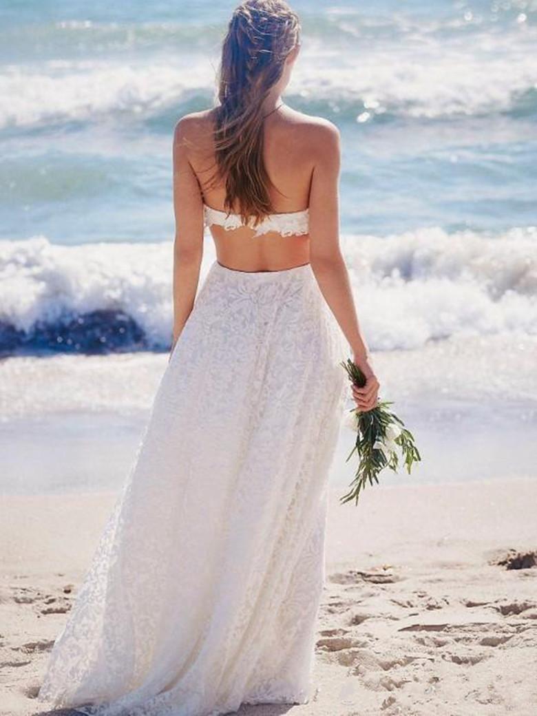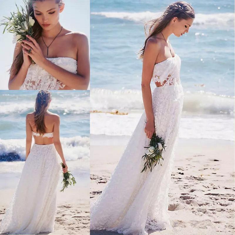 Simple Two Piece Beach Boho Wedding Dresses White Lace Summer Floor Length Backless Long Bohemian Bridal Gowns