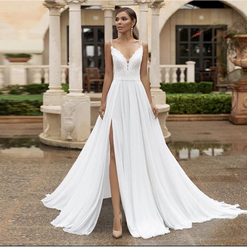Simple Elegant A Line Wedding Dress For Women brautkleid V Neck Chiffon Gowns Open Back Bridal Dresses