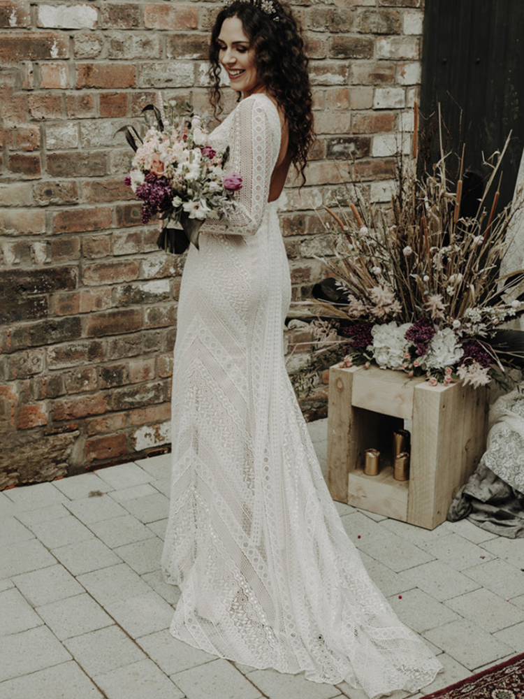 Bohemian Backless Wedding Dress Lace Beach A Line Sweetheart Bridal Gowns