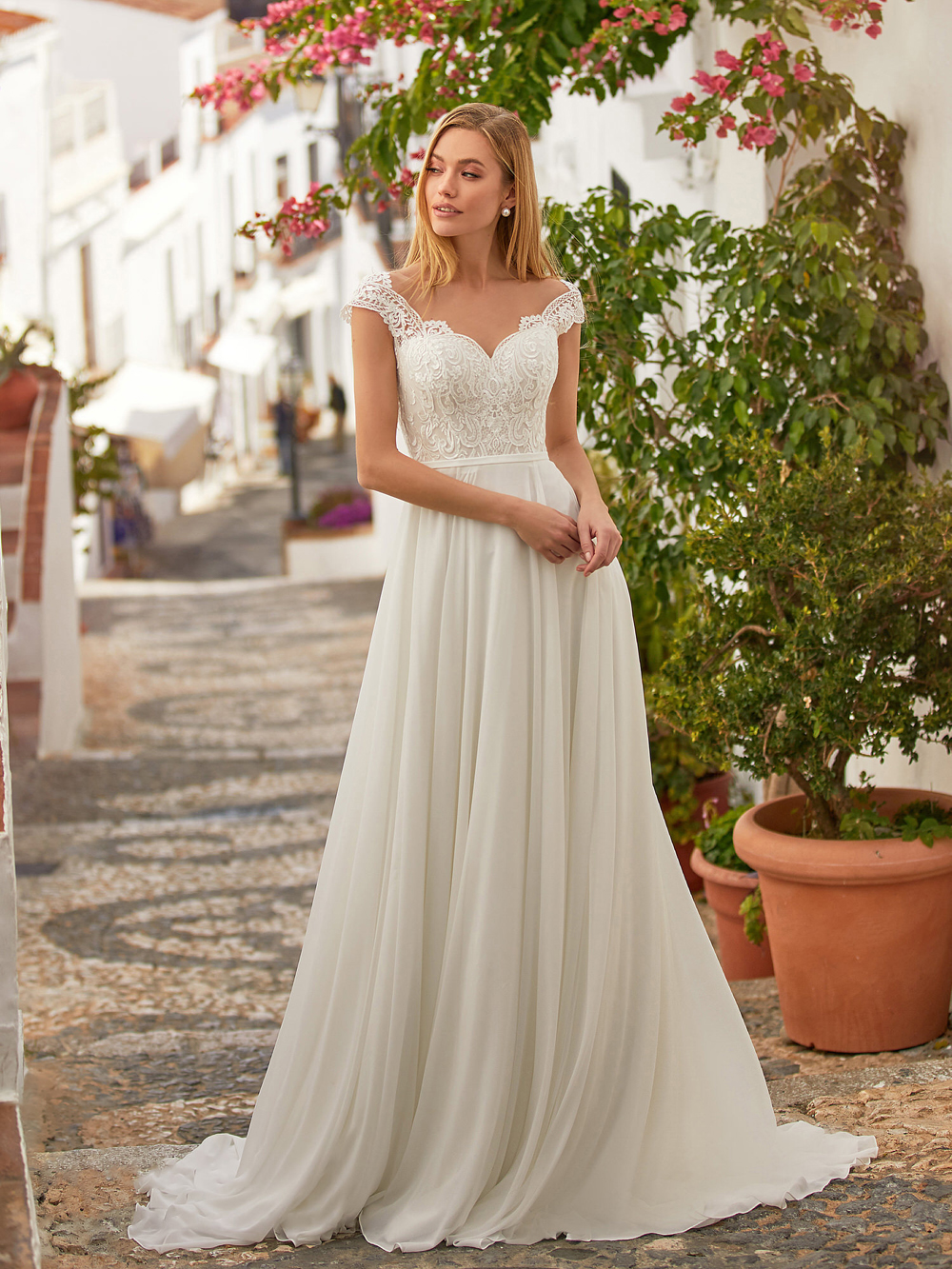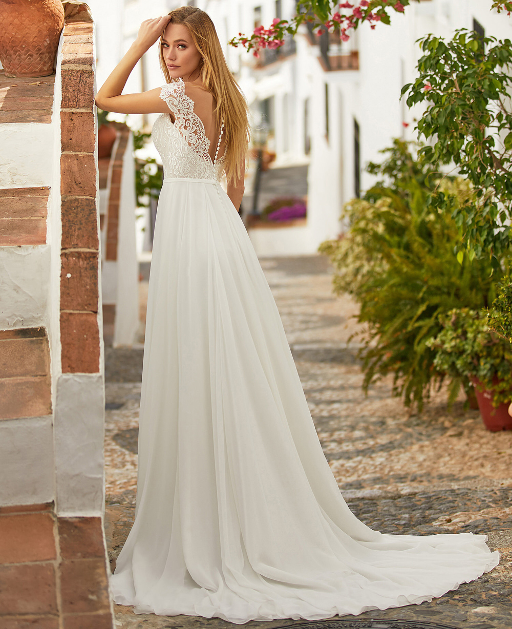 Bohemian Simple Elegance Wedding Dress V-Neck Sleeveless Lace Applique Wide Shoulder Straps Chiffon Court Train Wedding Gown