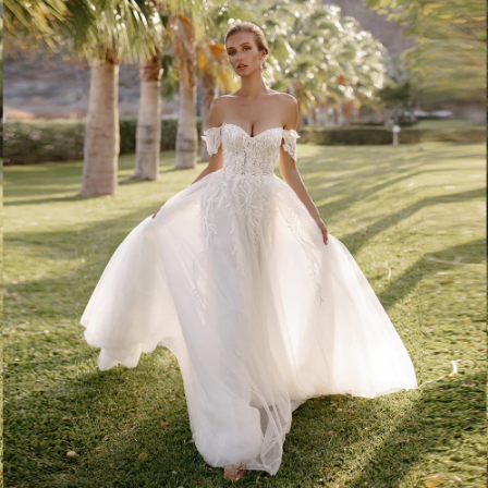 Bohemian Wedding Dress Off Shoulder Removable Charming White Dress A-Line Tulle Sweep Train Long Bridal Gowns