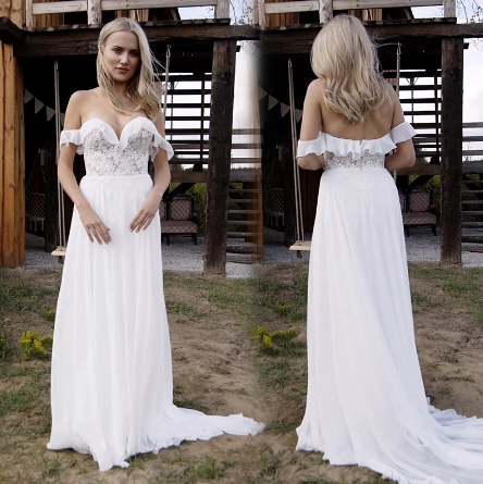 Cheap White Ivory Off Shoulder Chiffon Beach Wedding Dresses Simple Boho Bridal Gowns