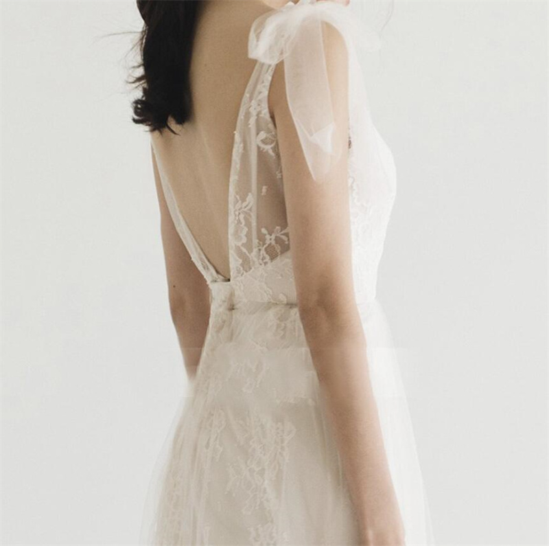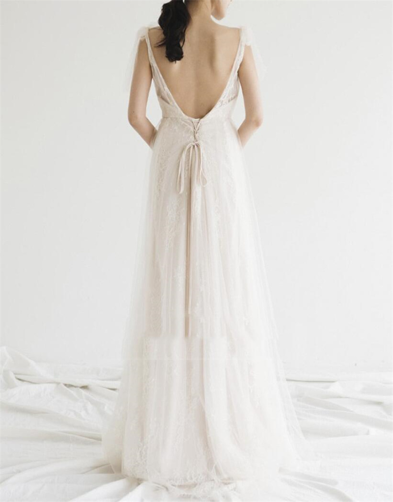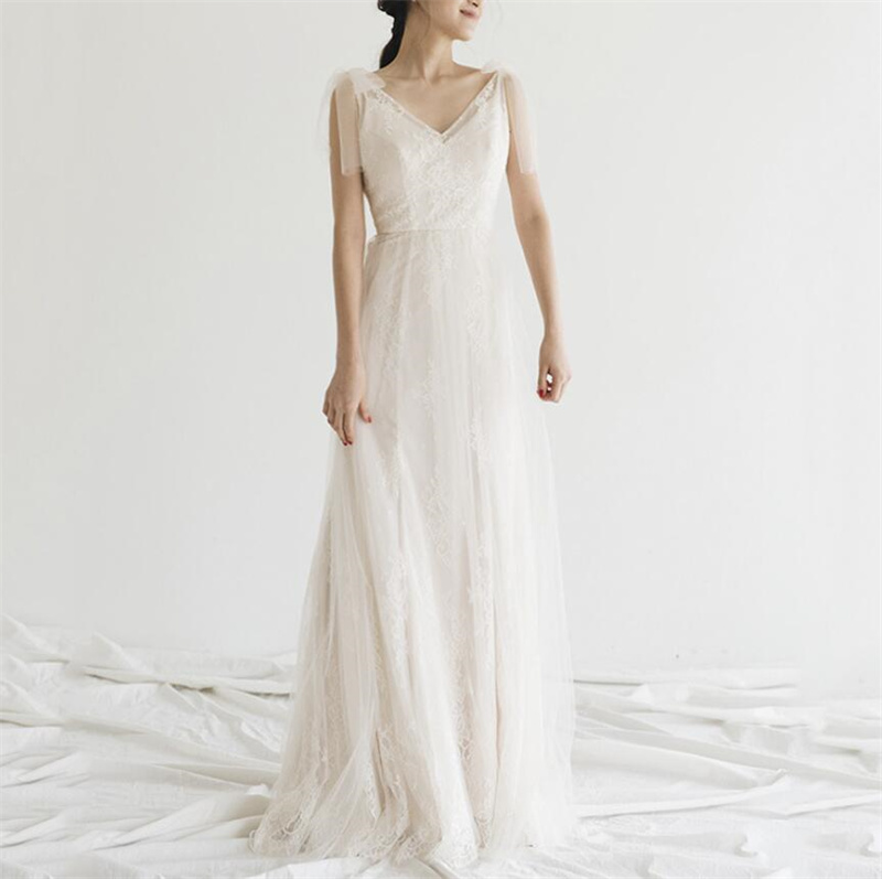 Floor Length vestidos Bohemian Lace Wedding Dresses V-neck Straps A Line Boho Wedding Gown