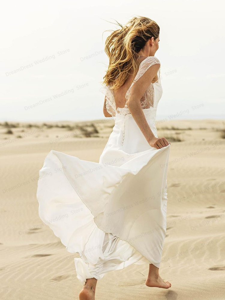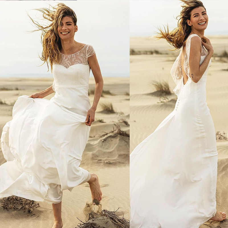 Bohemian Beach Wedding Dresses Backless Simple Lace Bridal Gown