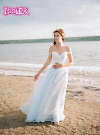 Bohemian Breathtaking Tulle Wedding Dress Lace Sweetheart Off-Shoulder Backless A Line Simple Elegant Bridal Dress