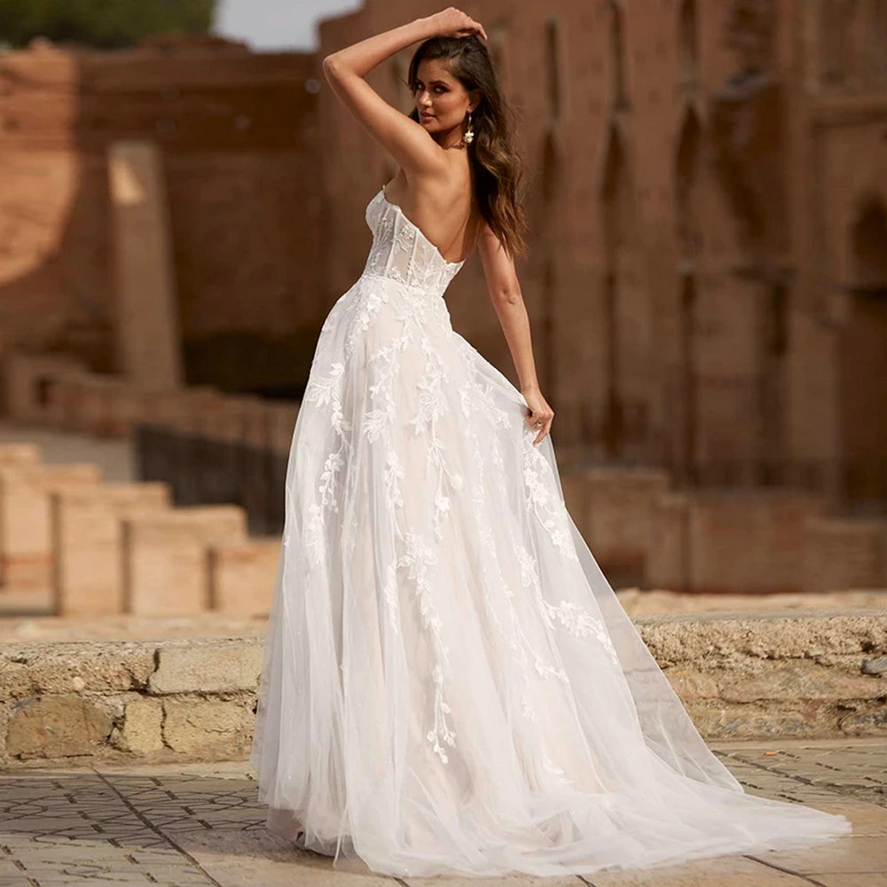 New Designs Fanweimei Wedding Dresses Off-Shoulder Sweetheart Lace Sleeveless Boho Bridal Dress Arabic Wedding Gowns