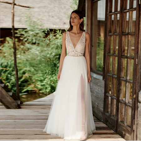 V Neck Sleeveless Wedding Dresses Boho A Line Lace Tulle Bridal Gown