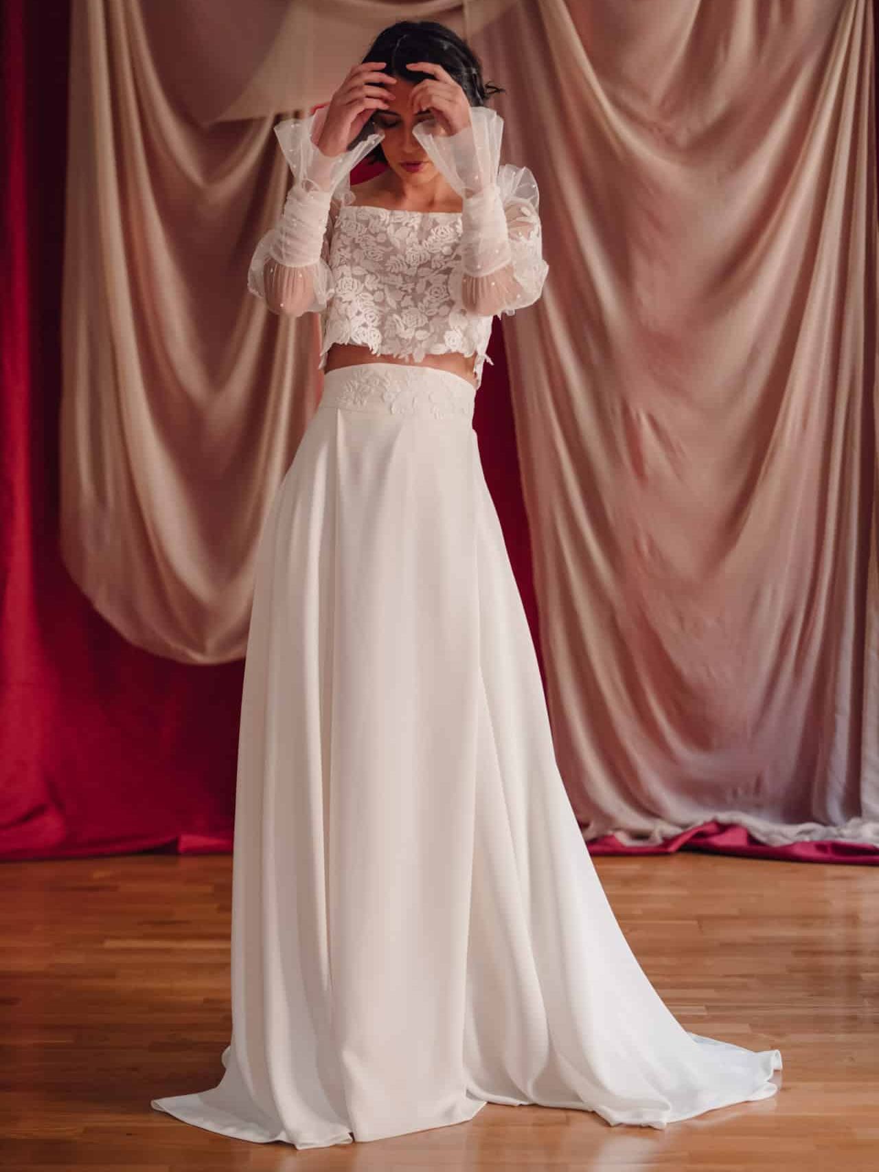 Bohemian Wedding Dresses Lace Square Neck Long Sleeves A Line Chiffon Bridal Gowns Modest Two Pieces