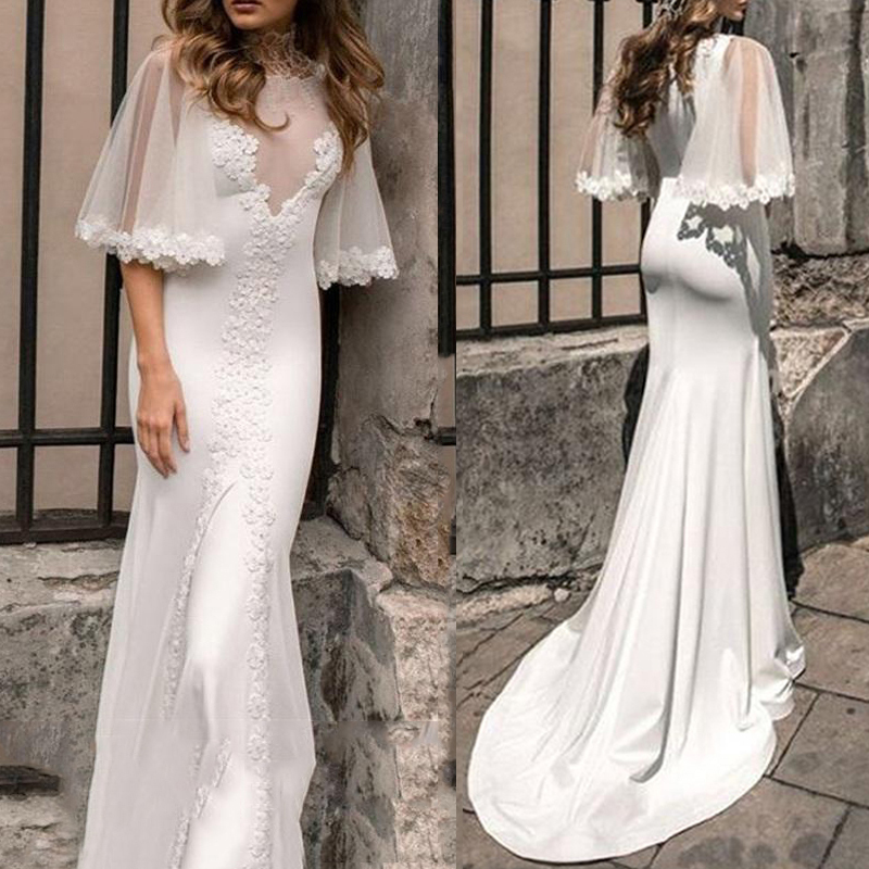 Elegant Boho Mermaid Wedding Dress Plus Size Flower Lace Appliqued Sweep Train Beach Bridal Gowns