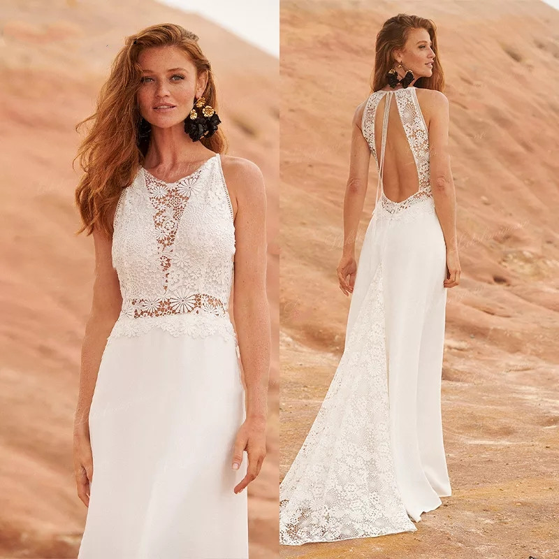 Mermaid Boho Chiffon Wedding Dresses vestido de novia Halter Neckline summer holiday Beach Lace Sweep Train Bridal Gown