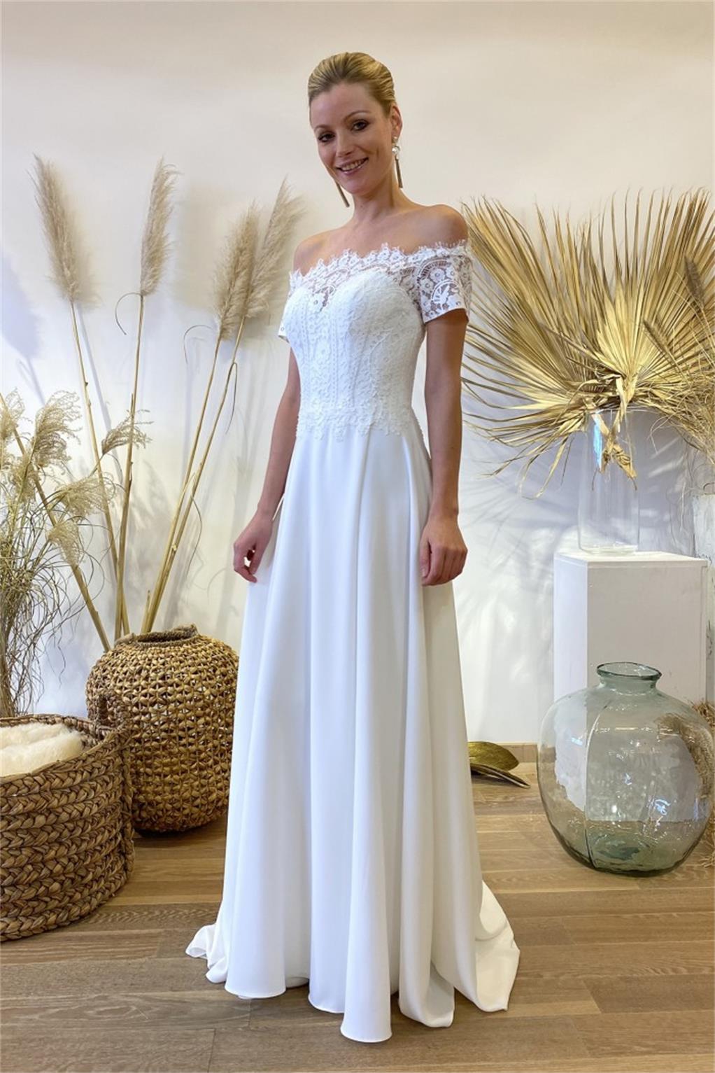 New Beach Wedding Dresses A Line Appliques Lace Boat Neck Boho Bridal Gowns