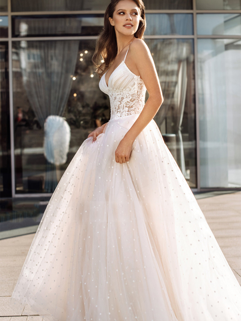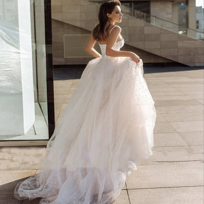 Ruched Tulle Pleated Lace Wedding Dress Bohemian Zipper Spaghetti Straps A Line Backless Bridal Gown