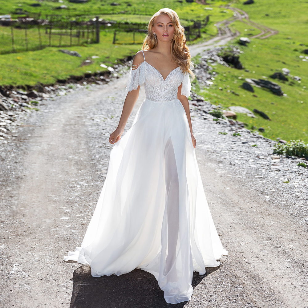 White Custom Made Bohemian New Lace Appliques Off the Shoulder Princess Bride Gown