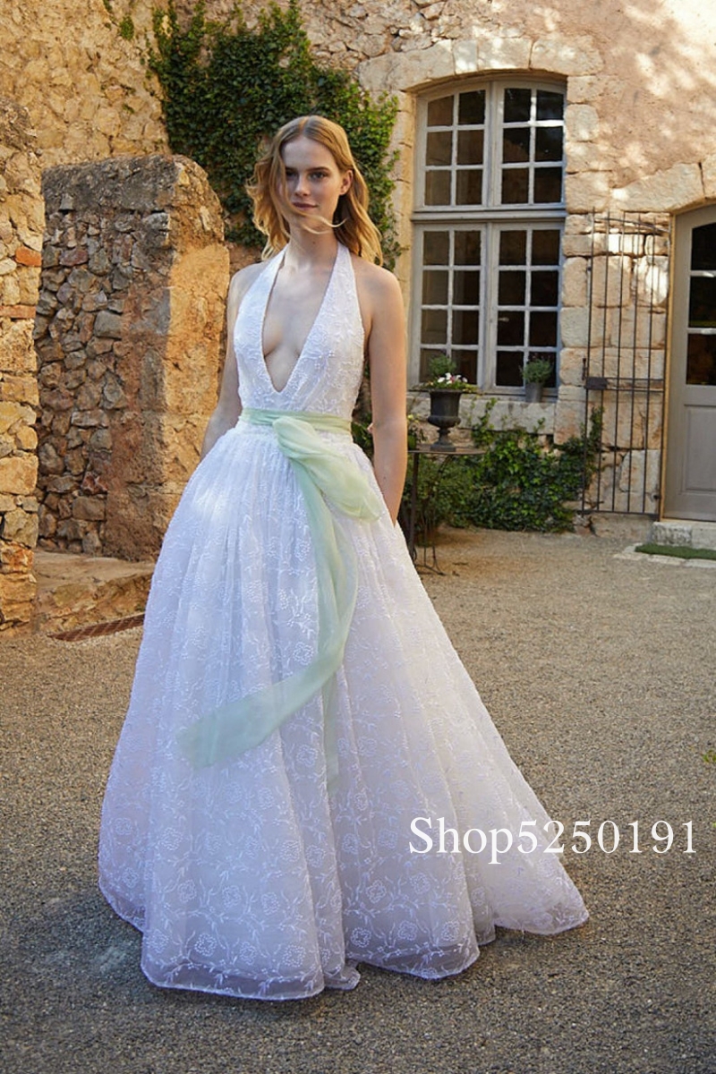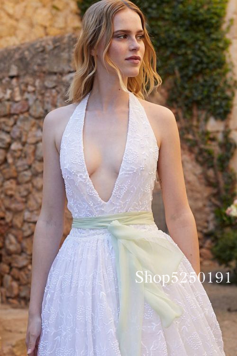 Sexy Backless Boho Wedding Dresses White Sexy Halter Lace Bridal Dress Beach Seaside Bridal Gowns