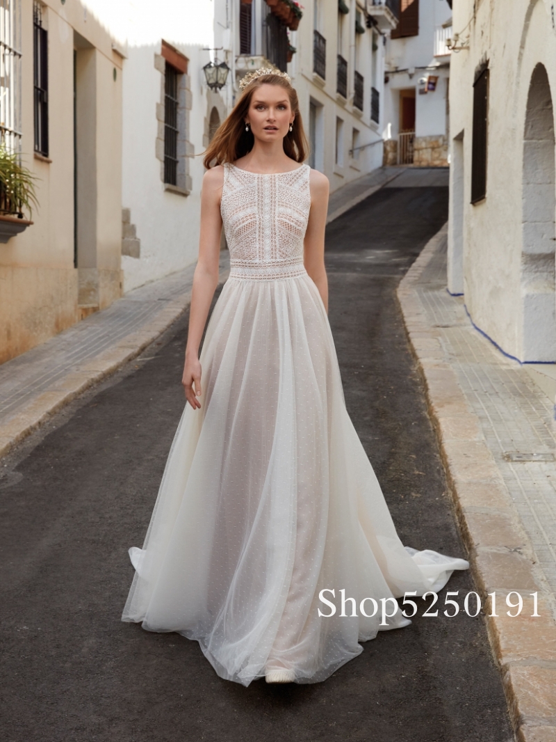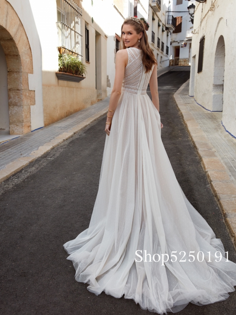 Stunning Boho Wedding Dress Sleeveless Lace Tulle A Line Wedding Dresses Custom Made Bridal Gowns