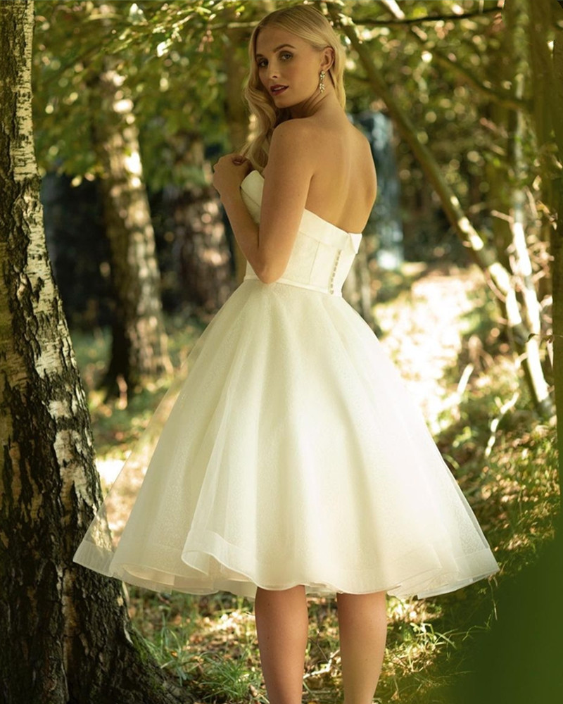Boho Sexy Sweetheart Wedding Dress A-line Knee-Length Botton Backless Sleeve Tulle White Princess Bride Gown