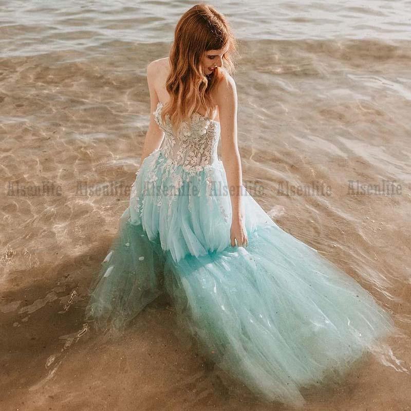 Latest Summer Boho Bridal Wedding Gowns Sweetheart Lace Appliques Green Bohemia Wedding Dresses for Bride Princess