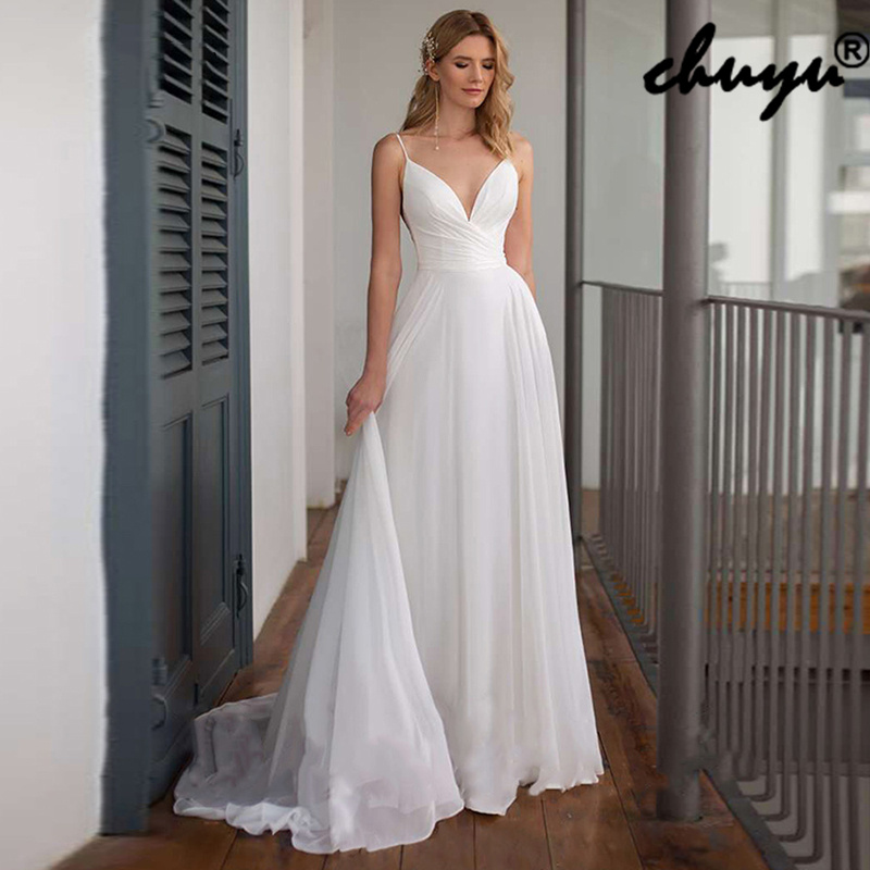 Summer Chiffon White Wedding Dresses Sleeveless V Neckline Pleat Simple Tokyo Revengers