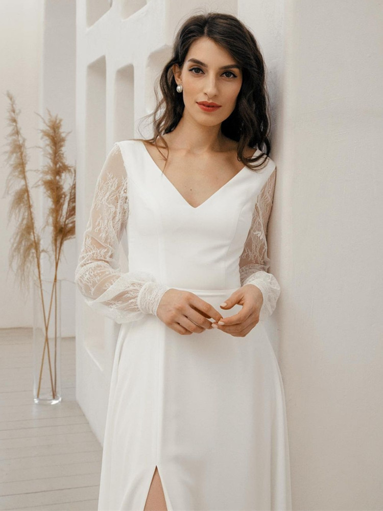 Sparkly High Slit Long Sleeves Wedding Dress New Arrival Chiffon Backless Lace Applique Elegant Wedding Gown