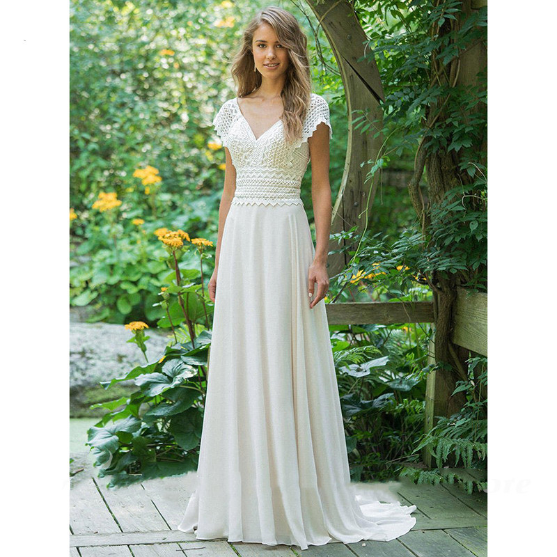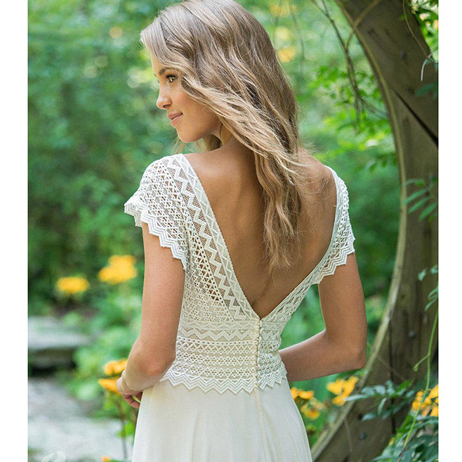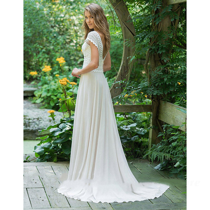 Elegant Lace Court Train Bridal Gown Sexy V Neck Chiffon Beach Wedding Dresses
